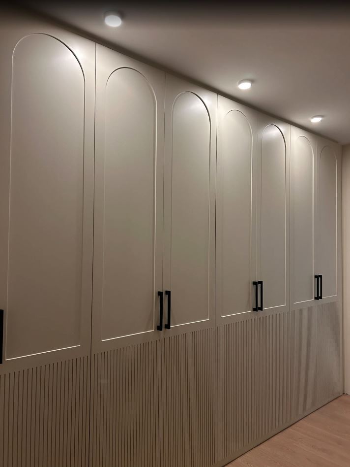 El blanco, uno de los colores que tampoco pasa nunca de moda. Por eso, el tono blanco con el estilo clásico es una combinación ganadora. Puedes darle un toque de color al diseño con unos tiradores negros que resalten o jugar con la textura del vestidor. También hay muchas personas que optan por el beis por un color alternativo al blanco. ¿Qué te parece este trabajo que hicimos?